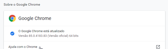Após reiniciar o navegador, volte nessa tela e verifique se você tem a versão 85 instalada. O próprio Chrome informará se você está usando a versão mais atualizada.